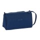 Large format main compartment with zipper. Side interior pockets. Contains 32 pieces: graphite pencil, scissors, sharpener, eraser, 3 pens, highlighter, 12 colored markers, and 12 colored pencils. Front flap with zipper with access to the interior. The flap contains 4 elastic loops for pens, highlighters, and graphite, and a mesh pocket. Side handle