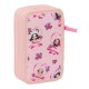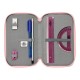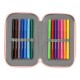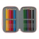 Contains 36 pieces: eraser, graphite pencil, blue ballpoint pen, sharpener, engraved blue ruler, and semicircle (1st compartment), 16 wooden coloring pencils (2nd compartment). 14 colored markers (3rd compartment).