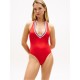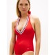 The Tommy Hilfiger Women's One Piece Swimsuit is designed for pool and beach wear. Its halter neckline offers adjustable support for a secure fit.