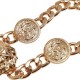 This heavy and short curb necklace triumphs over similar chains through a sparkling lion head that is flanked by two amulets. The modern and effective chain necklace is gold-plated and consists of zinc and iron. A perfect choice for setting fashion accents. Specifications: - Shell Fabric 1: 60% Zinc Alloy 40% Iron