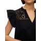 Features: - Product Type:Top. - Neck:V-Neck. - Sleeve:Short sleeves. - sleeves:Pleated sleeves. - Fit:Regular Fit. Composition: Shell: 100% Cotton - Organic. The main material in this product contains a minimum of 50% organic cotton. Care instructions: Max. shrinkage 5%, Wash with similar colours. 30°C fine wash, Do not bleach, Iron at moderate temperature, Do not dry-clean.