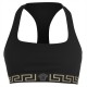 Make a designer addition to your essentials with the Greca Border Sports Bra from Versace. Crafted from a cotton blend, this bra is cut with a square neckline leading to a racer back to create a sporty silhouette. Designed with the Greca print woven along the elasticated under-bust-band, this bra is finished with the iconic Medusa motif woven to the centre - wear yours with the matching thong or briefs.