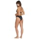 This skimpy-fit bottom´s hugs every curve with slinky, stretchy attitude. Flaunt minimal coverage and a low-rise silhouette, with a metal rivet adding a stylish pop on your right hip. Features: - Women´s bikini bottom. - Low rise. - Skimpy coverage. - Metal rivets at wearer´s top right. - Made with at least 80% recycled polyester. Composition: 80% Recycled Nylon (Polyamide), 20% Elastane.