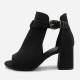 Design: Open toe and open side silhouette with side buckle detail