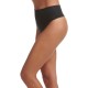 This thong is made of seamless fabric that appears invisible underneath clothing and fits like a second skin. The high rise waistband, open back and bonded edges help smooth and prevent lines.
