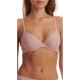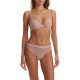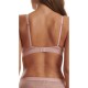 Logo embroidered sheer mesh with wire and tulle lined cups in a neutral color. Our unlined Demi is airy and light and provides support.