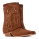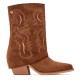 Women´s ankle boot from the Xti brand. Made of high-quality suede, with an elegant design that includes a skirt that adds movement and sophistication to the model. Its cowboy-style sole, with beautiful stitching that highlights the design, gives it a touch of originality and style. With a 7 cm high heel, this ankle boot offers the perfect balance between comfort and height. Ideal for complementing both casual and more dressed-up looks, guaranteeing safe and comfortable walking thanks to its non-slip sole. A unique model for those looking to stand out with style. With a removable insole. This model has obtained vegan certification from the world organization PETA (Animal Rights Organization).
